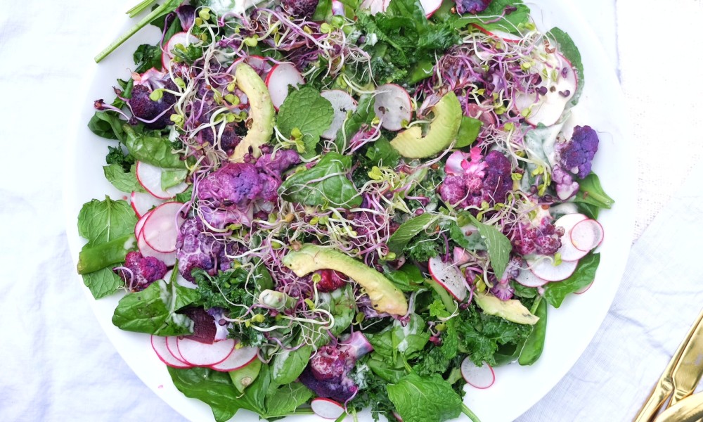 You know when you just really want something crunchy and fresh, but with all the goodness of healthy fats, creamy roasted cauliflower and zesty flavour? This salad, whilst supplying a huge range of live enzymes, vitamins and minerals also holds such a delicious combination of flavours. The slightly bitter radish, with the sweet snow peas, earthy beetroot, and savoury miso combined with the sharp apple cider vinegar and lemon. Quick, easy, healthy and delicious.